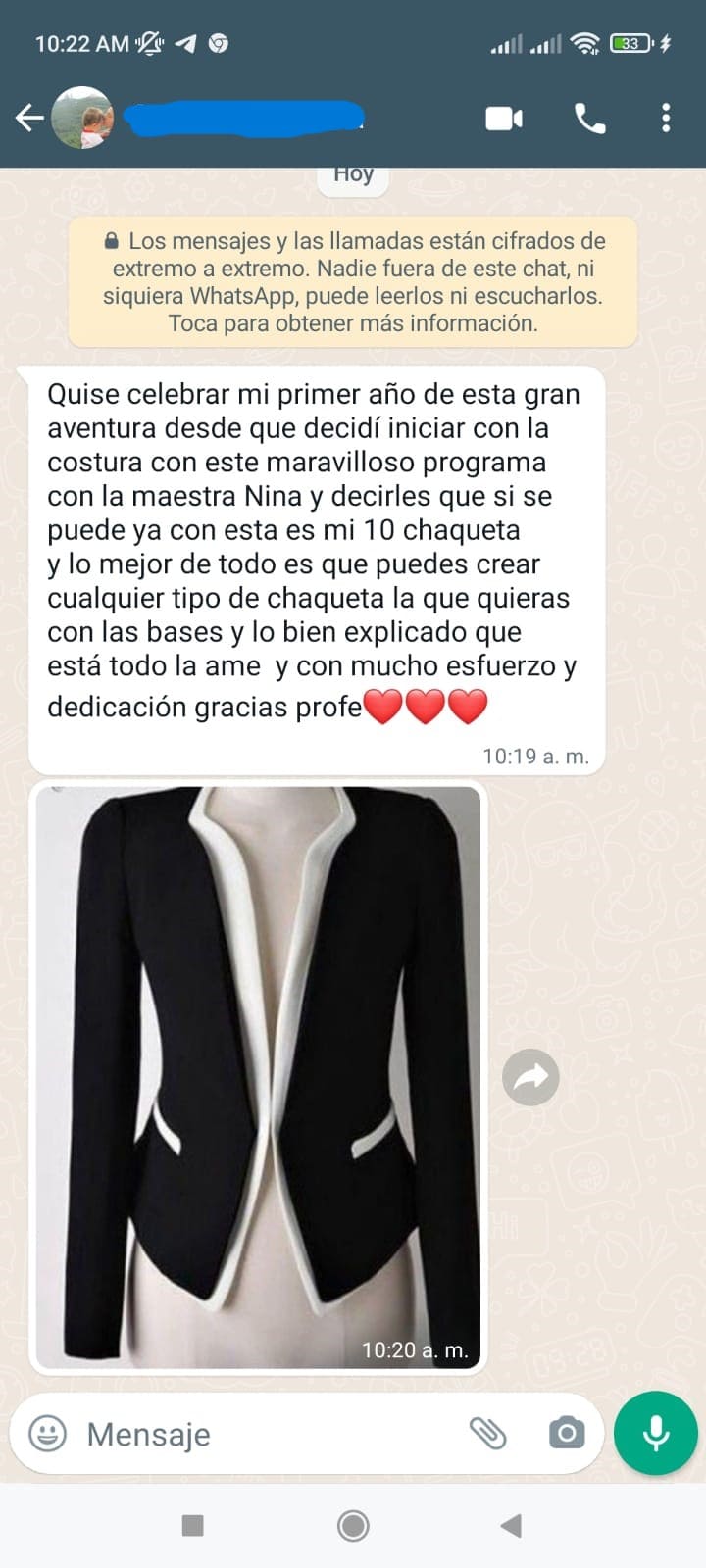 Tendrás el Grupo Privado de WhatsApp, donde recibirás orientación directa por nuestra profesora , podrás resolver tus dudas, recibir feedback específico y avanzar en tu camino hacia la excelencia en la creación de prendas únicas y estilizadas